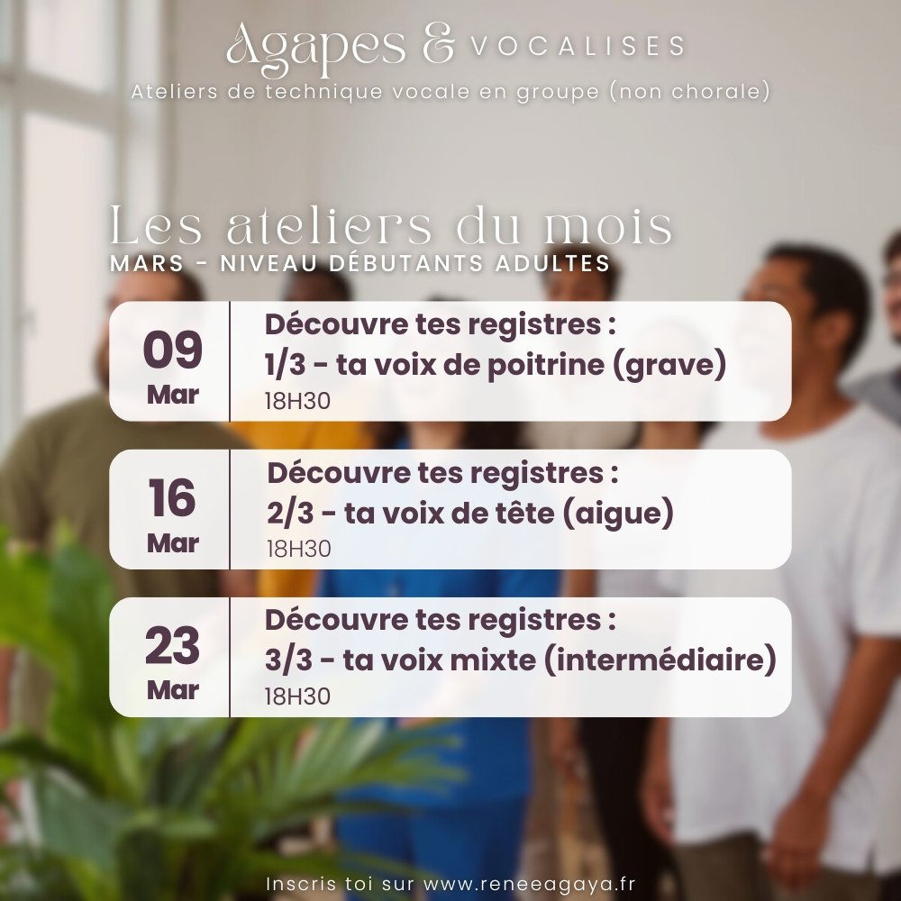 • 16 mars 18h30 : Découvre tes registres :2/3 – ta voix de tête